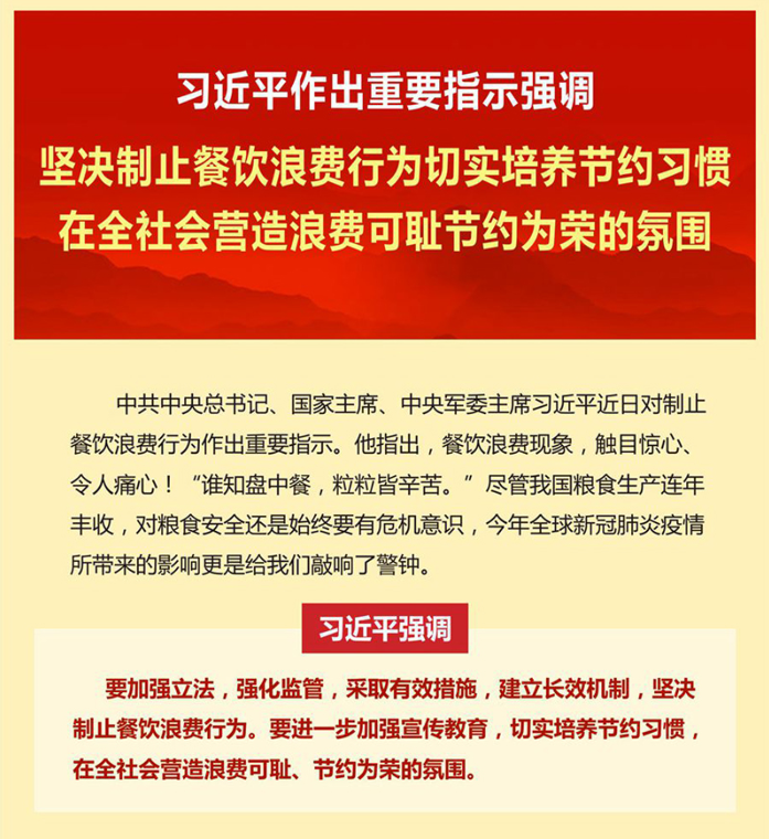 宣傳和貫徹落實習近平總書記對制止餐飲浪費行為重要指示精神